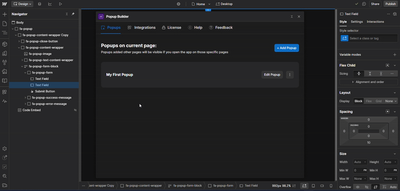 Go to the Integrations Step In the popup builder, navigate to the Integrations step.