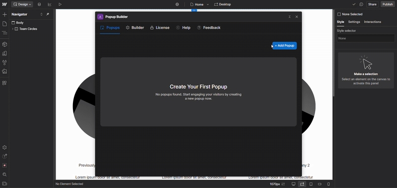 Next, simply paste the template into the desired section of your Webflow Designer to display the popup on your website.