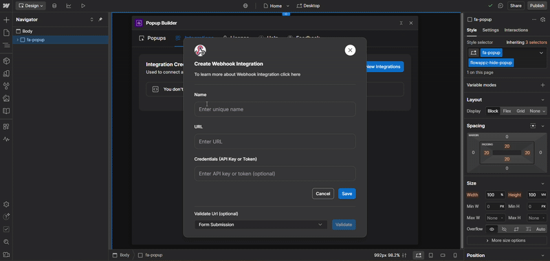 Step 3: Connect Webhook to a Popup