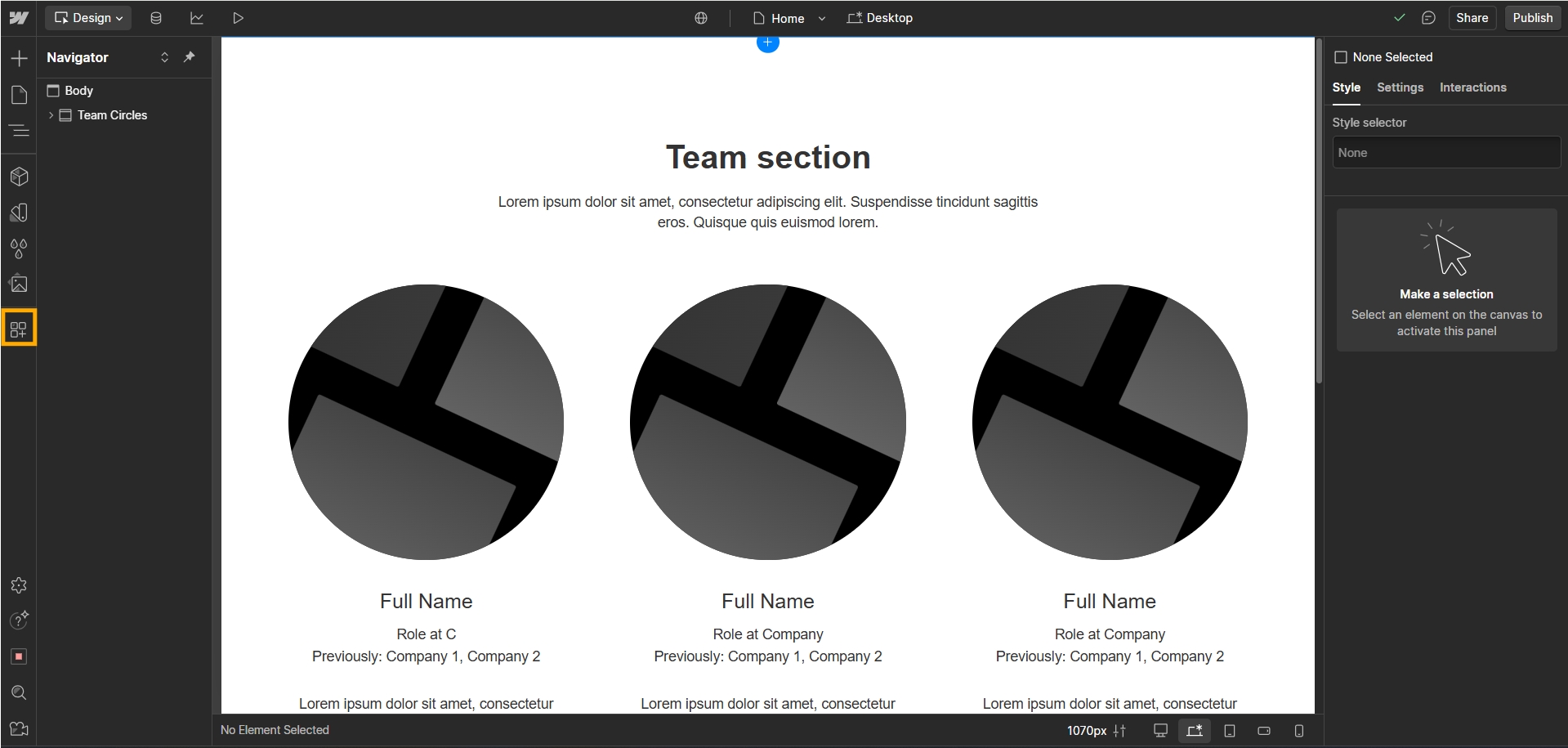Navigate to your Webflow Designer, then click on the Apps icon located in the left sidebar. Refer to the screenshot below for visual guidance.